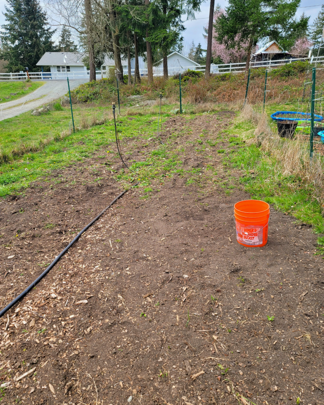 My youngest using the dibbler to plant it in the rows next to the (meager) fall garlic that is coming up strong.