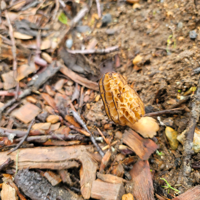 We were weeding beds we created a year ago, when I noticed all the fungi in the wood chips we had layed. And yes, they were morels.